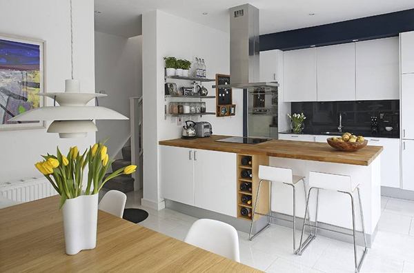 開放式廚房的存在,就是為了解決留給廚房的空間過小的問題,但如果廚房和餐廳的空間沒有得到合理利用,那么就算留出了再多空間,使用廚房的時(shí)候還是會(huì)感覺束手束腳的。櫥柜的收納空間一定要足夠,操作臺(tái)留出一定的烹飪空間,各項(xiàng)用具的擺放要合理,如果操作臺(tái)空間不足,可以用中島臺(tái)或者吧臺(tái)進(jìn)行適當(dāng)?shù)貜浹a(bǔ)。