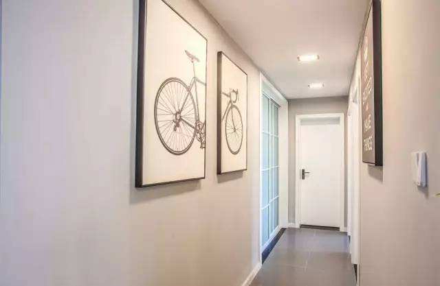 如果家居色調(diào)以白色為主,那么走道處就會(huì)變得空蕩蕩的,很不美觀。其實(shí),走廊的裝修沒(méi)有想象中的那么復(fù)雜,在這種情況下,只需要在墻面上掛上幾幅精心挑選的裝飾畫(huà),就能達(dá)到很好的效果。