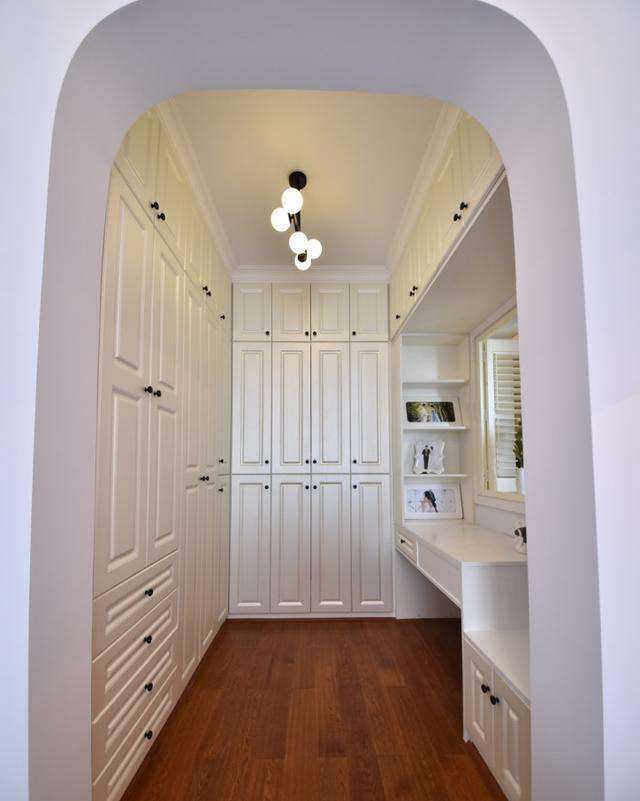 小戶型在做收納的時(shí)候,千萬不能忽略轉(zhuǎn)角的空間。利用轉(zhuǎn)角空間制作衣帽間,可以很大程度上提高空間的利用率,滿足收納需求。在設(shè)計(jì)的時(shí)候,可以把轉(zhuǎn)角處設(shè)計(jì)得盡量柔和一點(diǎn),否則會(huì)影響整體的美觀度。