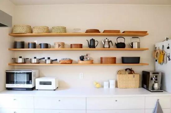 展示收納術說到廚房收納,很多人第一想法是把所有東西都收起來,讓廚房看起來空空蕩蕩,其實不然,廚房的收納也可以將物品擺出來,這種收納方法是展示收納法,簡單來說就是“我的廚具這么好看,當然是要擺出來給別人看的”收納術。