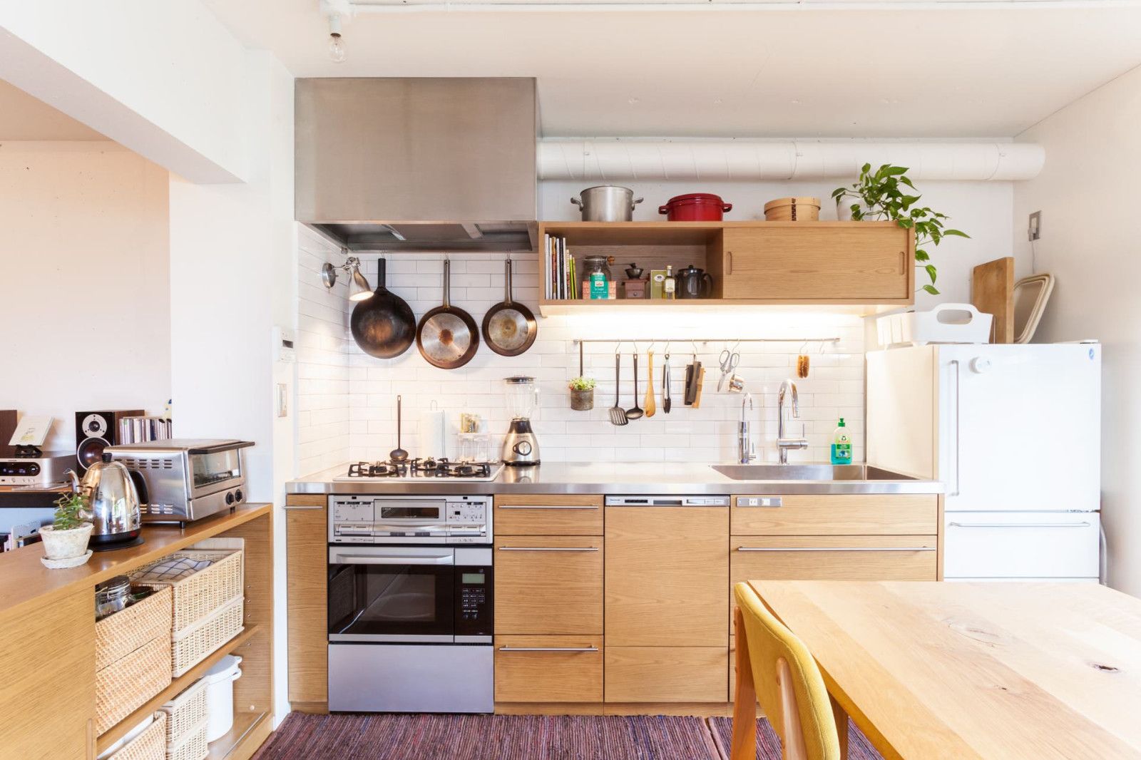 而日本主婦們每天要為家庭準備各種餐食,她們有各種精巧的廚具和相配套的餐具,她們用起來的時候也是有條不紊,使用后她們的廚房依舊整齊干凈,一切又回歸了原位仿佛像給廚房施了魔法一樣,其實日本的廚房這么好看,主婦們有她們的收納技巧。
