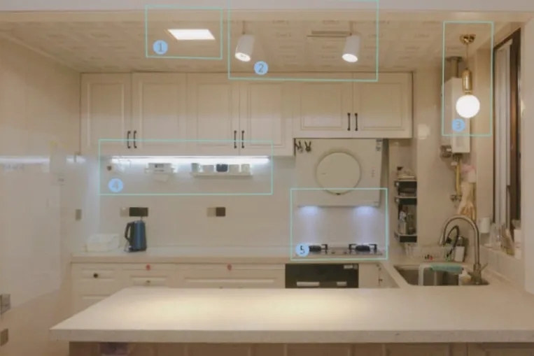 多數(shù)廚房只會安裝一個主燈,主燈一般位于天花板正中央,但人在切菜、洗碗、洗菜時就會背向燈光,身體會遮擋住光源,在昏暗的環(huán)境下切菜,稍不注意就會切到手,所以操作區(qū)補充照明是非常重要的。