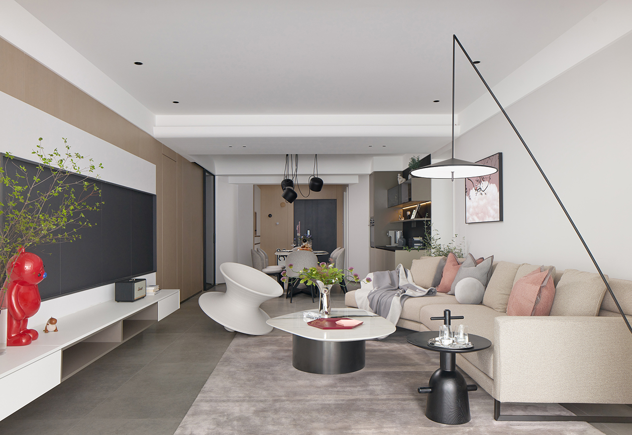 南寧合景·天峻廣場130平米現(xiàn)代簡約案例效果圖
