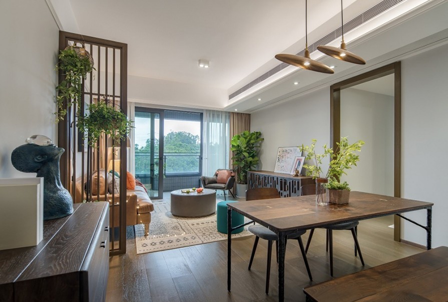 南寧億鼎中心毛坯房96平米中式風(fēng)格裝修案例效果圖