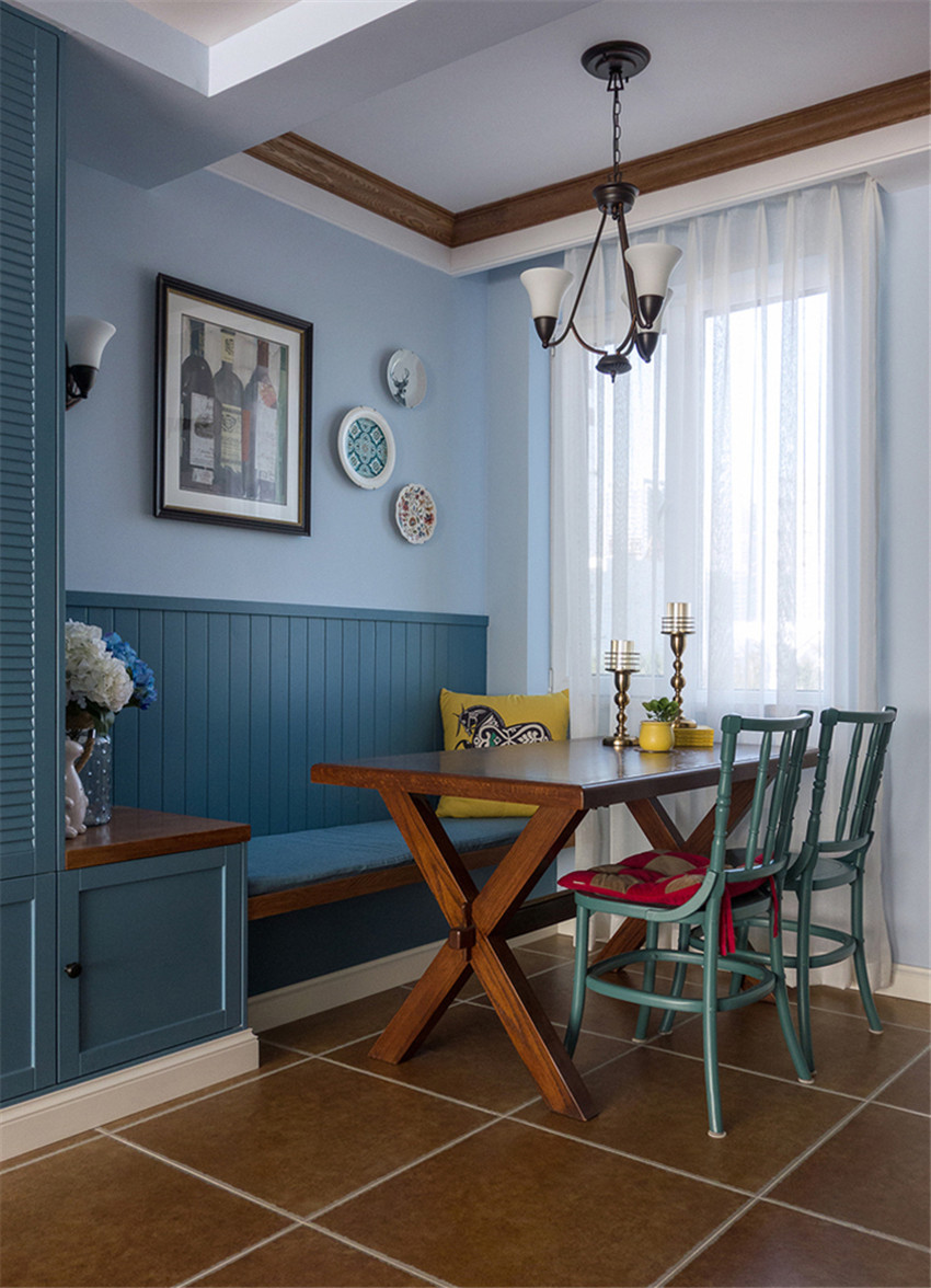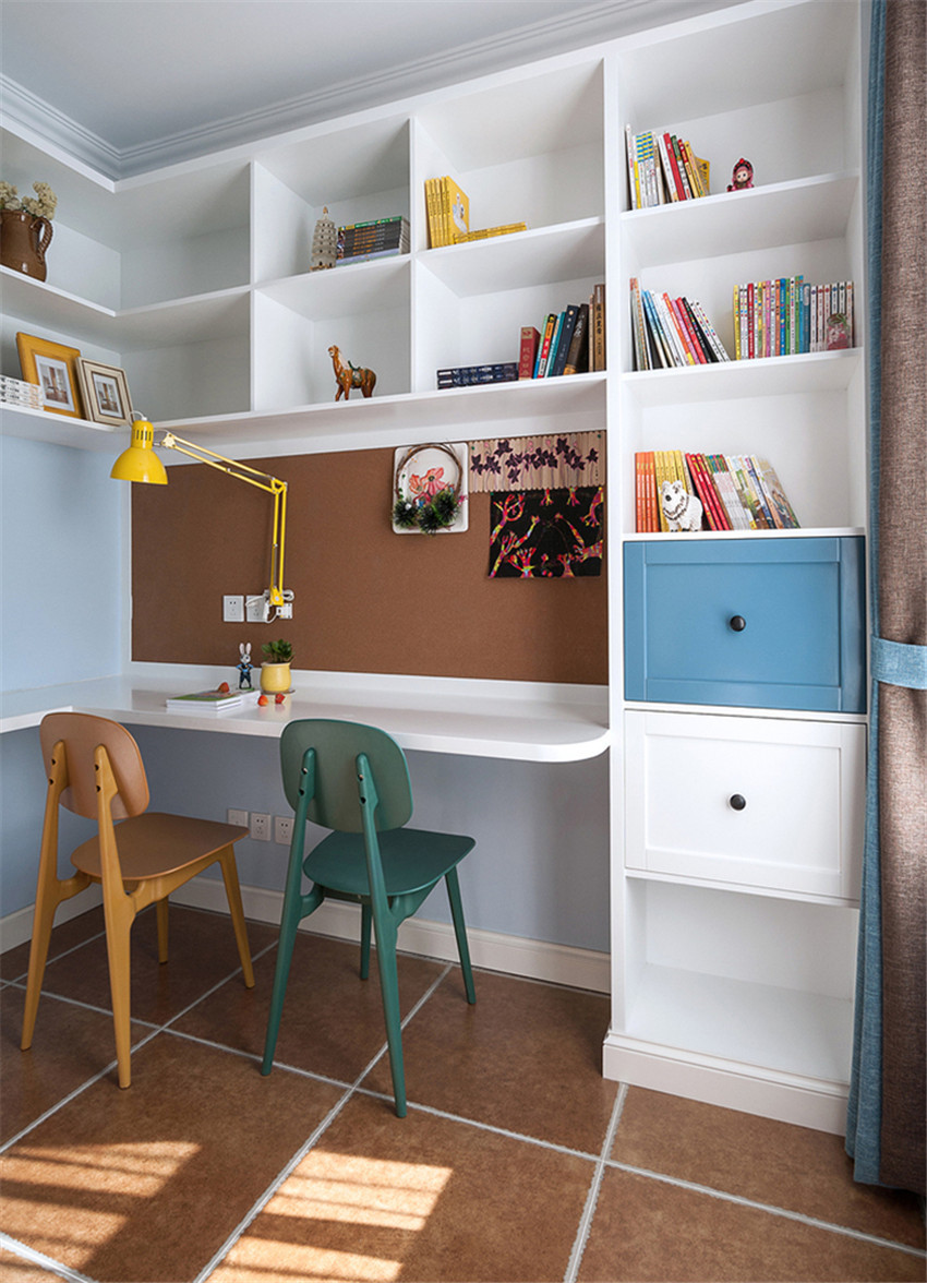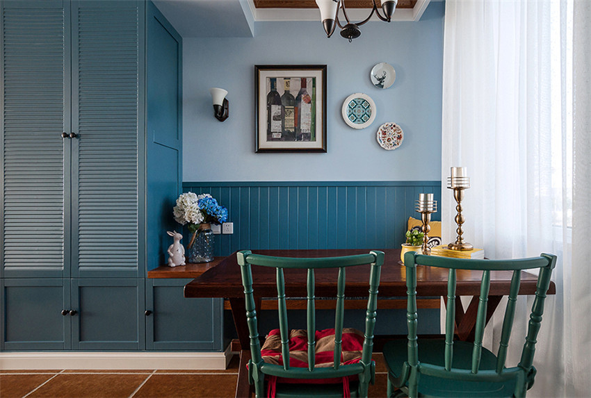 因為業主家里有小孩,所以設計的時候,用了一些較為活潑的顏色做裝飾。有一種美國家庭電影體現出來的質感。