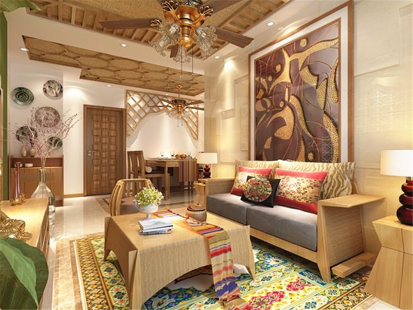 南寧海普·四季綠城毛坯房77平米地中海風(fēng)格裝修案例效果圖