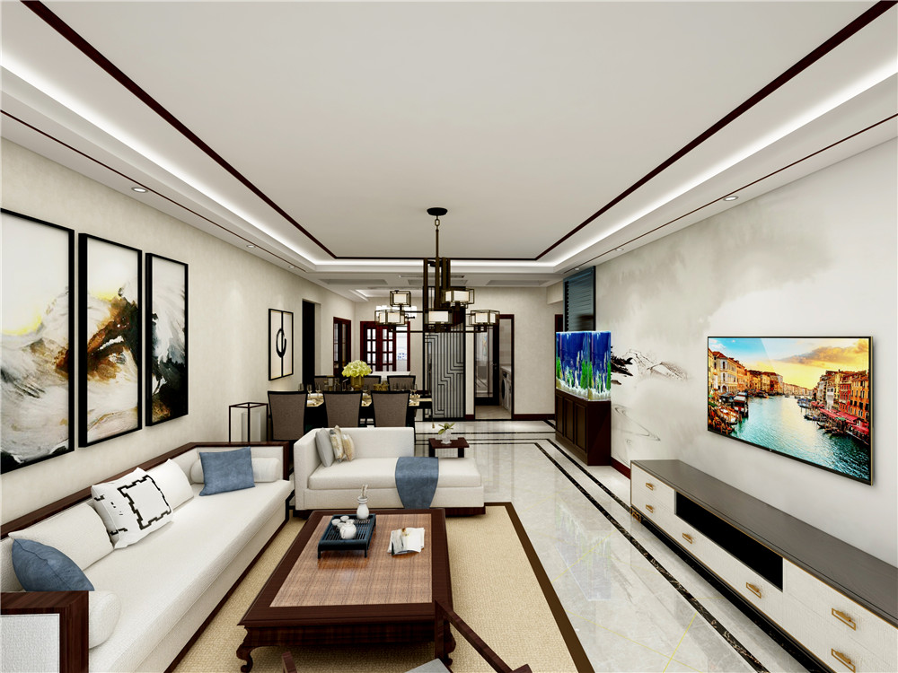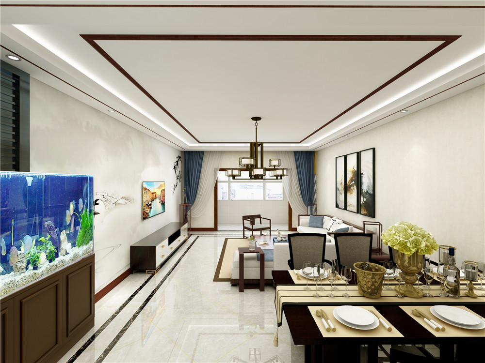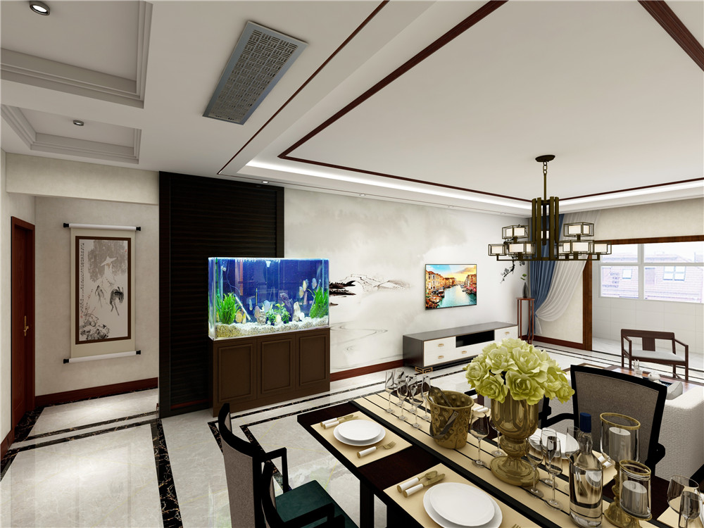 南寧中房翡翠灣毛坯房145平米新中式風(fēng)格裝修案例效果圖