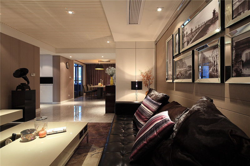 深色調本來會顯得壓抑與沉悶,但是經過燈光的調節以后,就變成了穩重與大氣。新古典的氣質體現在設計的方方面面,適合成熟穩重的精英人士。