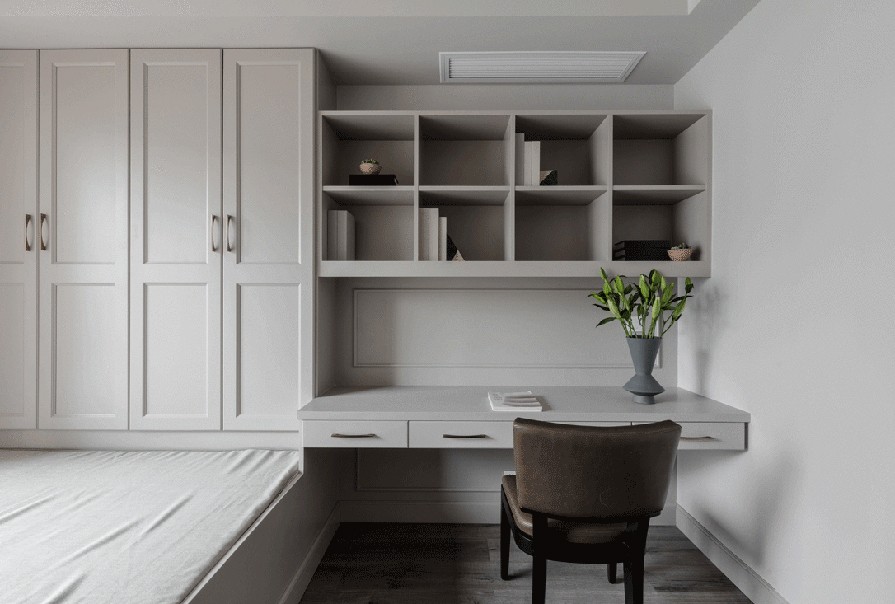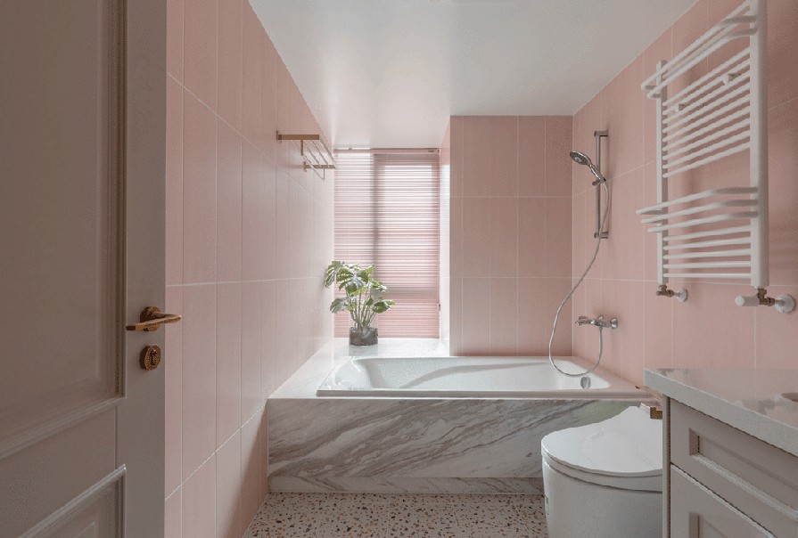 現(xiàn)代風(fēng)時(shí)尚干練,但是也會(huì)根據(jù)具體的空間作用去進(jìn)行適當(dāng)?shù)恼{(diào)整。衛(wèi)生間用粉白色做主色調(diào),顯得更通透明亮。