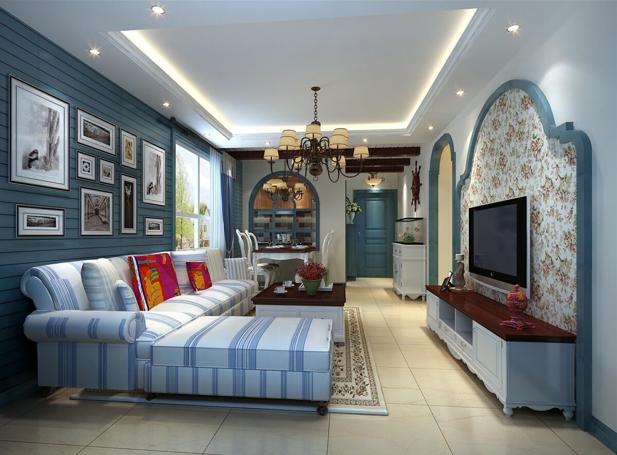 藍色是地中海風格里最不可缺少的元素,地中海風格最重要的,是營造一種正在度假的閑適感,而這套二居室的案例把這種閑適感做得剛剛好。