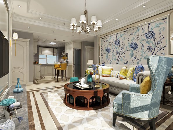 南寧瀚林錦城毛坯房78平米美式風(fēng)格裝修案例效果圖