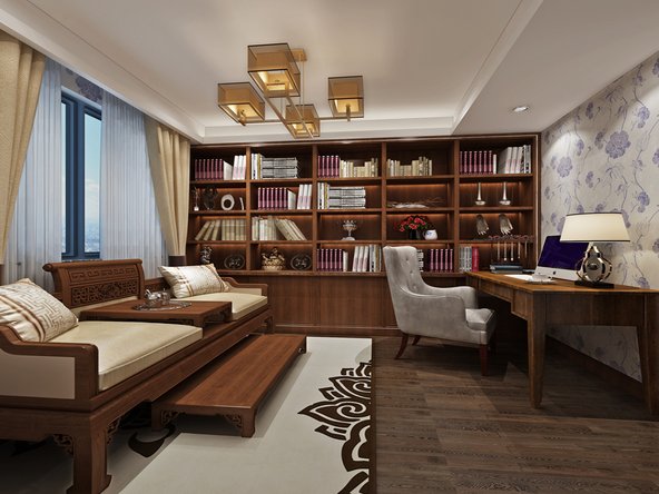 南寧億鼎中心毛坯房96平米中式風(fēng)格裝修案例效果圖