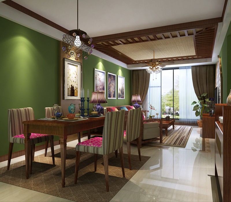 南寧億鼎中心毛坯房96平米中式風(fēng)格裝修案例效果圖