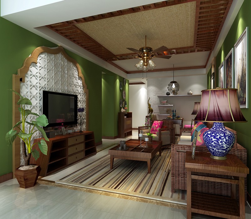 南寧海普·四季綠城毛坯房77平米地中海風(fēng)格裝修案例效果圖