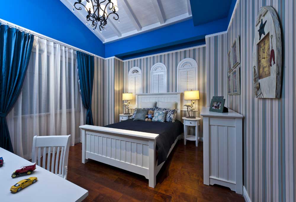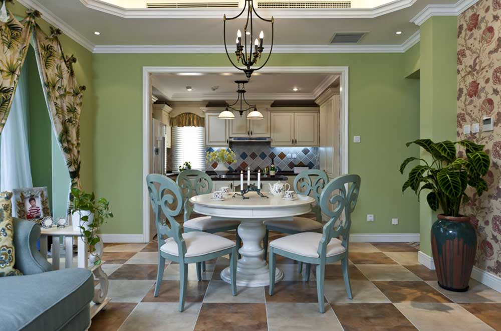 這是一套美式田園鄉村風格的三居室,色彩搭配比較大膽,但是整體上很是和諧,有一種牧場小屋的感覺。