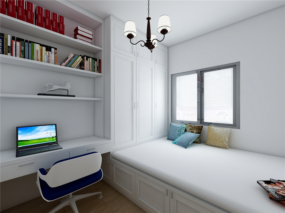 因為次臥的面積比較小,所以做成了榻榻米的樣式,既增加了儲物空間,也能讓整個空間看起來更寬闊明亮。