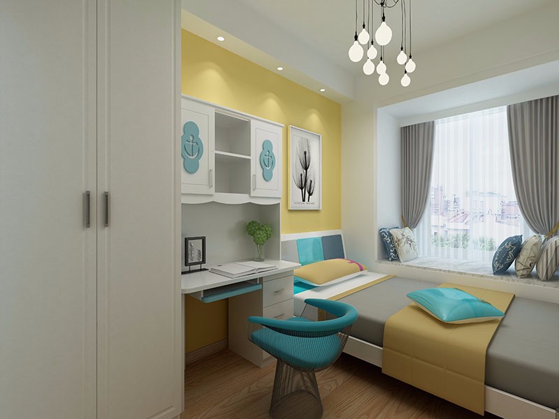 現代的時尚里帶了點日式的簡約,次臥的面積雖然不大,但是卻劃分出了學習、休息、休閑的空間。