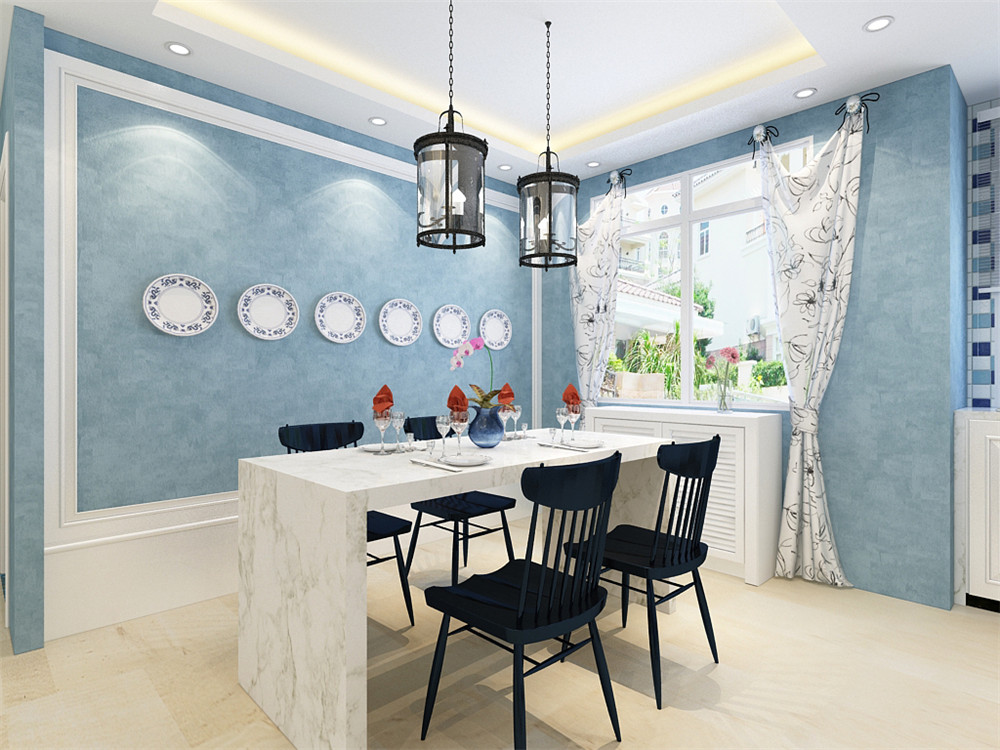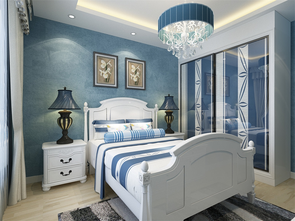 全屋以一種帶灰調(diào)的藍(lán)色作為主色調(diào),清新怡人。
