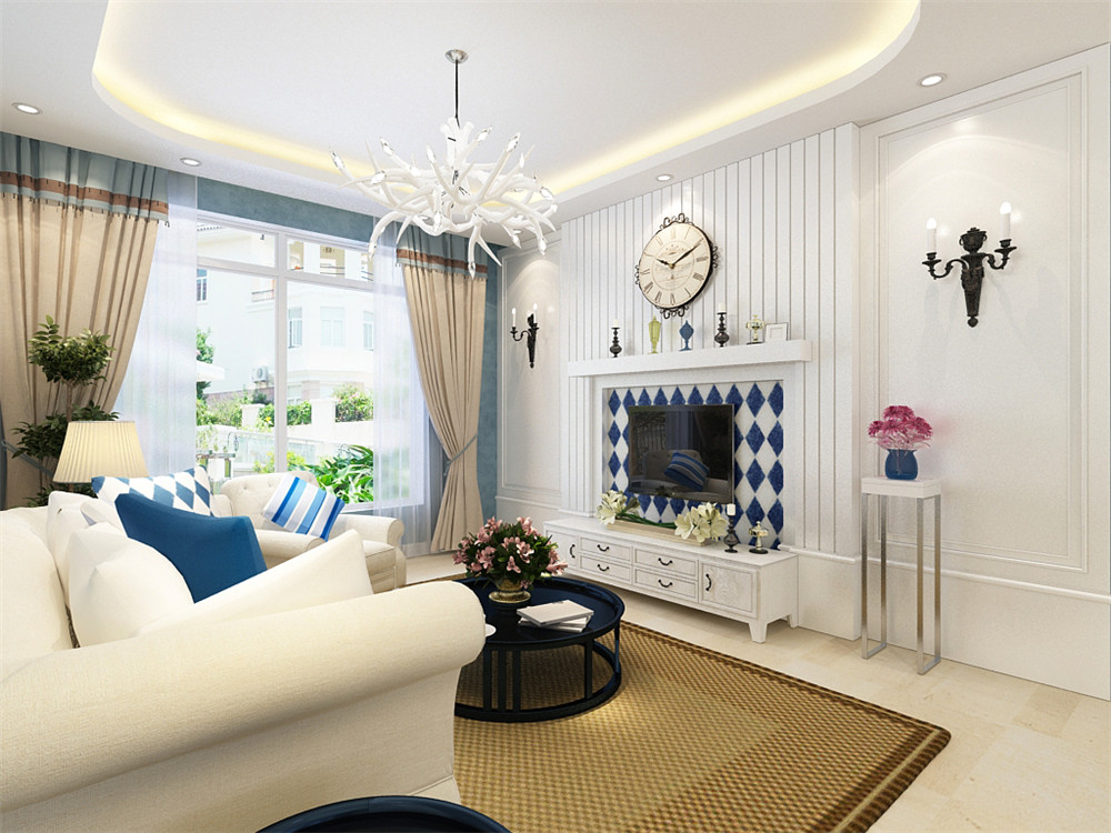 南寧華潤置地悅年華·潤府110平米地中海風(fēng)格案例效果圖