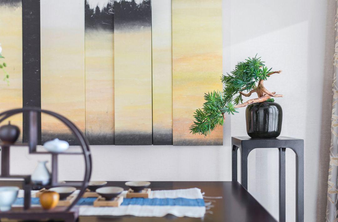 到處可見的水墨畫元素,裝點了客廳的空間,意境高遠,風格獨特。