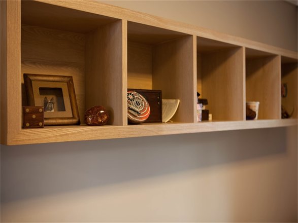 柜子幾乎都是定制的,完美貼合家里的每一寸空間,不會占用過多的面積,又能滿足日常使用。