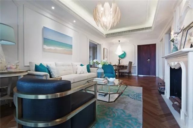 這套地中海風格所使用的藍色,不是常見的海藍色或者湖水藍,而是貴氣的孔雀藍。恰到好處的裝點,既能提升整體的格調與品位,又不會太過花哨。臥室的背景墻用帶有一點田園風的特色,溫馨舒適,會給人帶來一種正在度假的輕松氛圍。