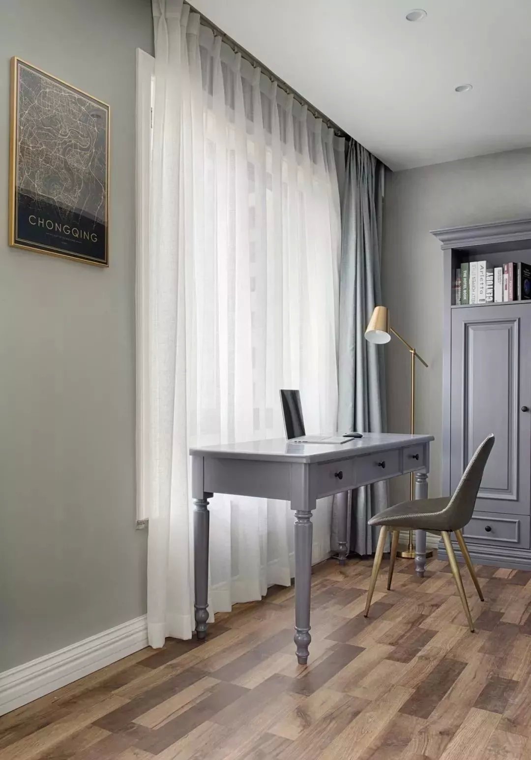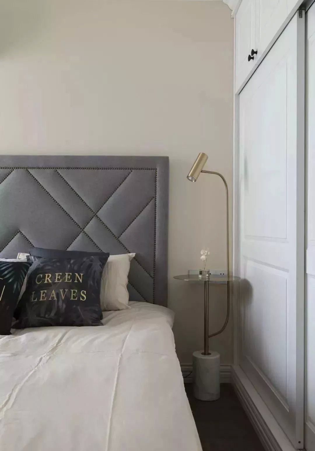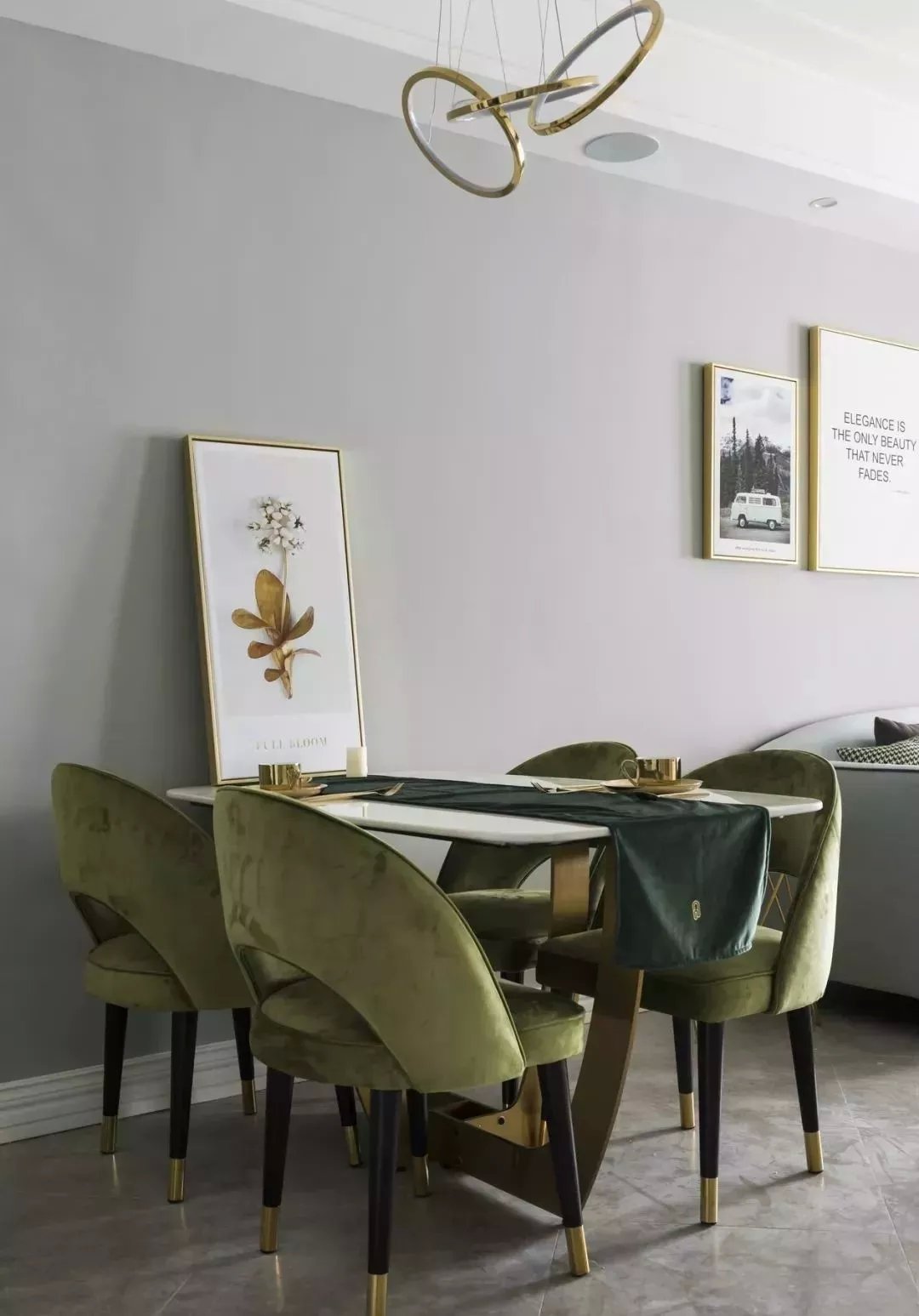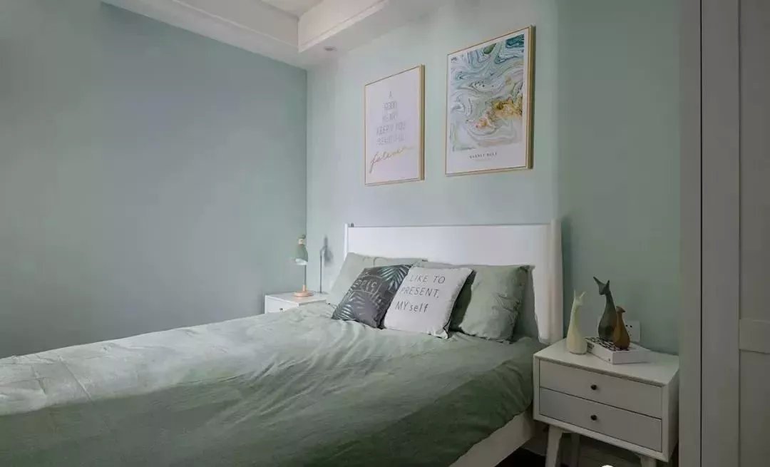 黑白灰是最北歐風里最常見的主色調,但是為了讓臥室的色調不會太過沉悶與單調,所以偶爾會用一些比較清新的顏色,作為臥室的主色調或者裝飾。這套二居室的次臥就是如此,稍微帶點灰調的綠色,清新自然,有一種怡然自得的舒適感,每一幅裝飾畫都是精心挑選出來的,符合整體的家居風格。
