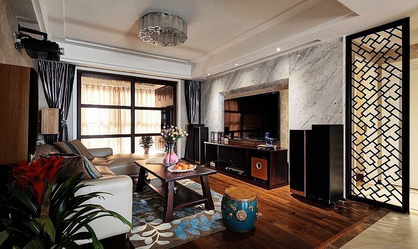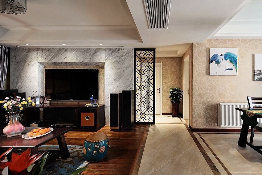 這套中式風格為了迎合業主的喜好,用了許多中式的家具去裝修,深色的中式家具成熟穩重,低調不張揚。客廳和玄關處用鏤空的中式屏風隔開,格調高雅又富有新意。但是女兒房的設計沒有必要那么沉悶,所以設計師在裝飾女兒房的時候還是以粉白色為主,活潑夢幻又清新舒適。