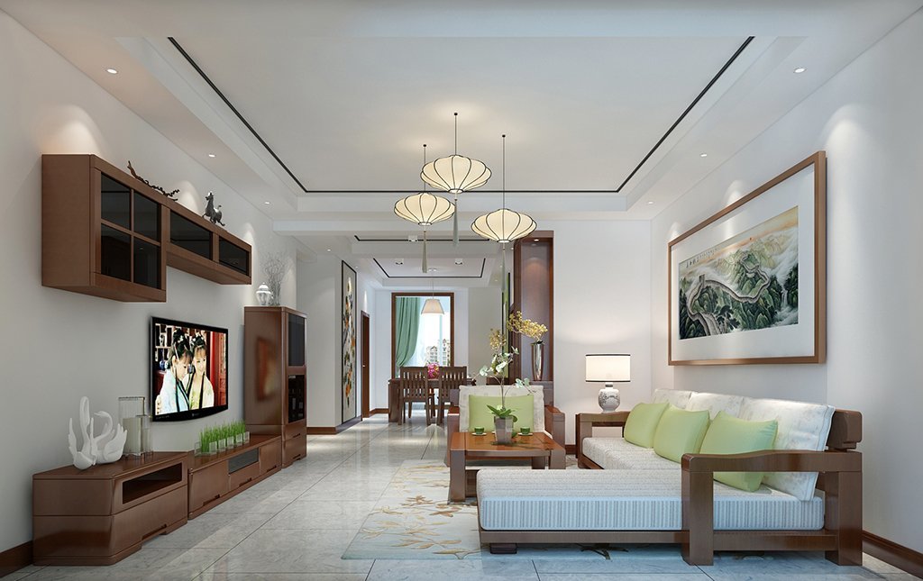 南寧恒大華府88平米中式風格裝修案例效果圖
