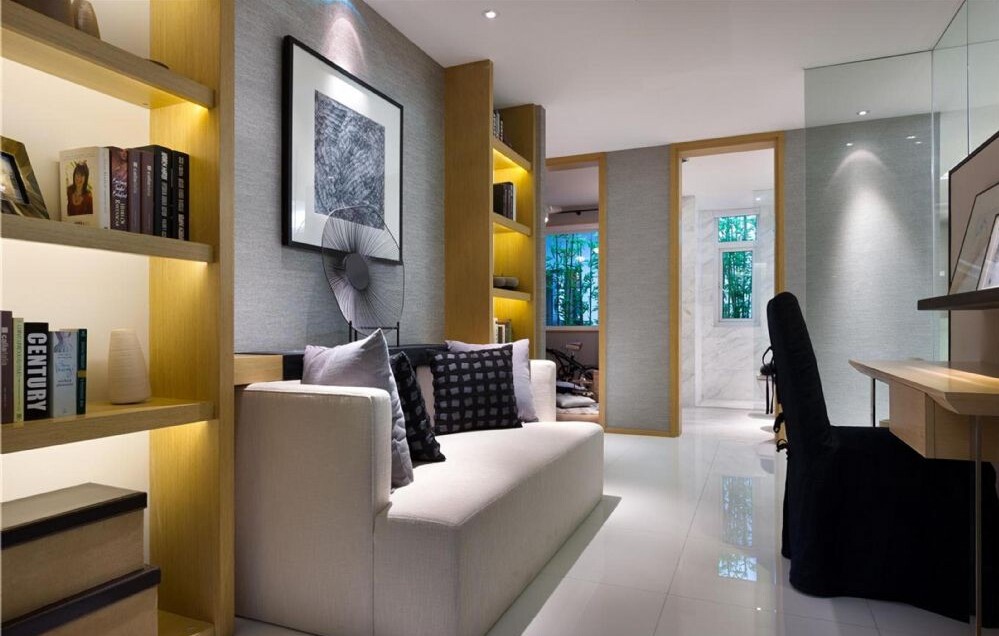 這套二居室的面積看著不大,但是該有的功能區可是一點都不少,書房的旁側就是健身區,能夠滿足家里人的多種需求。次臥的面積不大,所以采用了上床下桌的裝修方式,既保證了活動的空間,也不會太過擁擠。