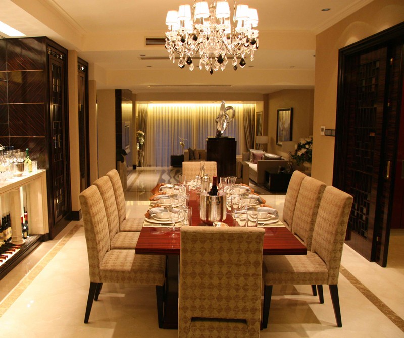 現代簡約風更注重空間的合理布局,用簡單的裝飾打造最舒適的家居氛圍。客廳和廚房同處于一片空間,中間沒有設置隔斷,所以為了保持裝修風格的一致性,餐廳使用的桌椅和客廳的沙發,屬于同一色系,同一風格的家具。