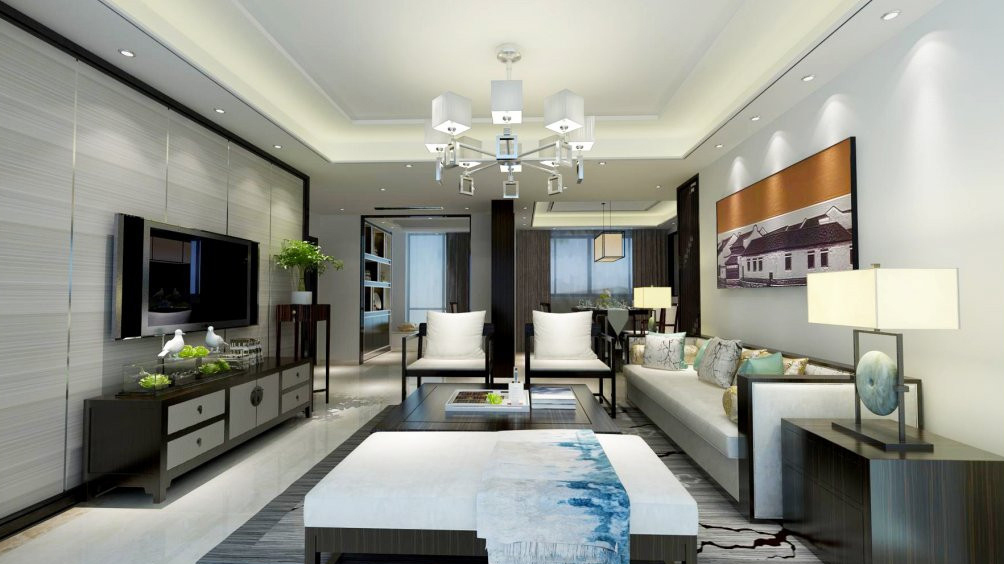 南寧國賓壹號毛坯房80平米中式風格裝修案例效果圖
