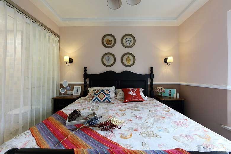 設計師重在打造一套以實用風格為主的美食公寓效果,用白色為底色搭配深色的家具,家具無論是色澤還是材質都具有簡約的古典風韻,裝飾方面比較簡約,幾幅掛畫、幾盆植物,整個家居空間給人以一種簡約的美式古典風。