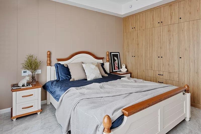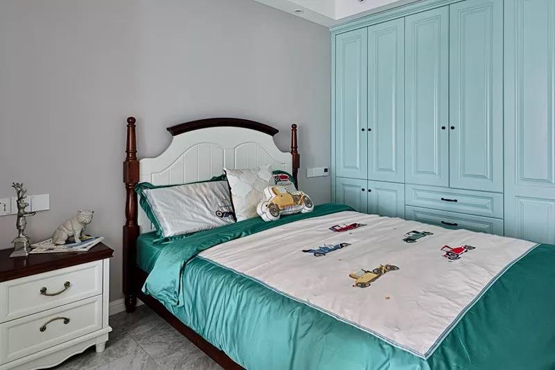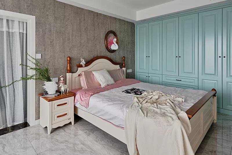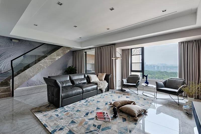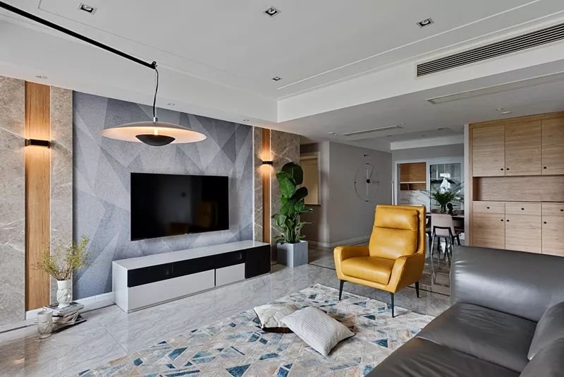 這是一套四居室的小復式,一層是客餐廚,二層是臥室。客廳的電視背景墻,用幾何的圖案,打造出了滿滿的現代風,時尚又典雅。每一間臥室都有自己獨特的風格,但是整體上又有一致性。臥室的主色調清新淡雅,不管什么時候看過去,都讓人心曠神怡。
