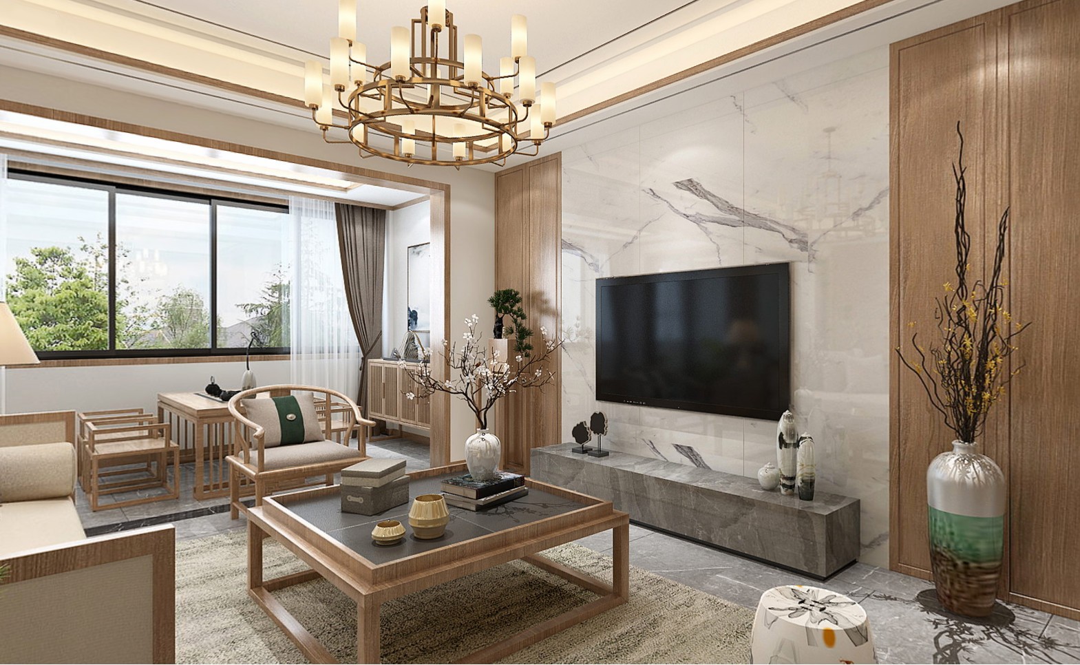 南寧天健西班牙小鎮毛坯房128平米中式風格裝修案例效果圖