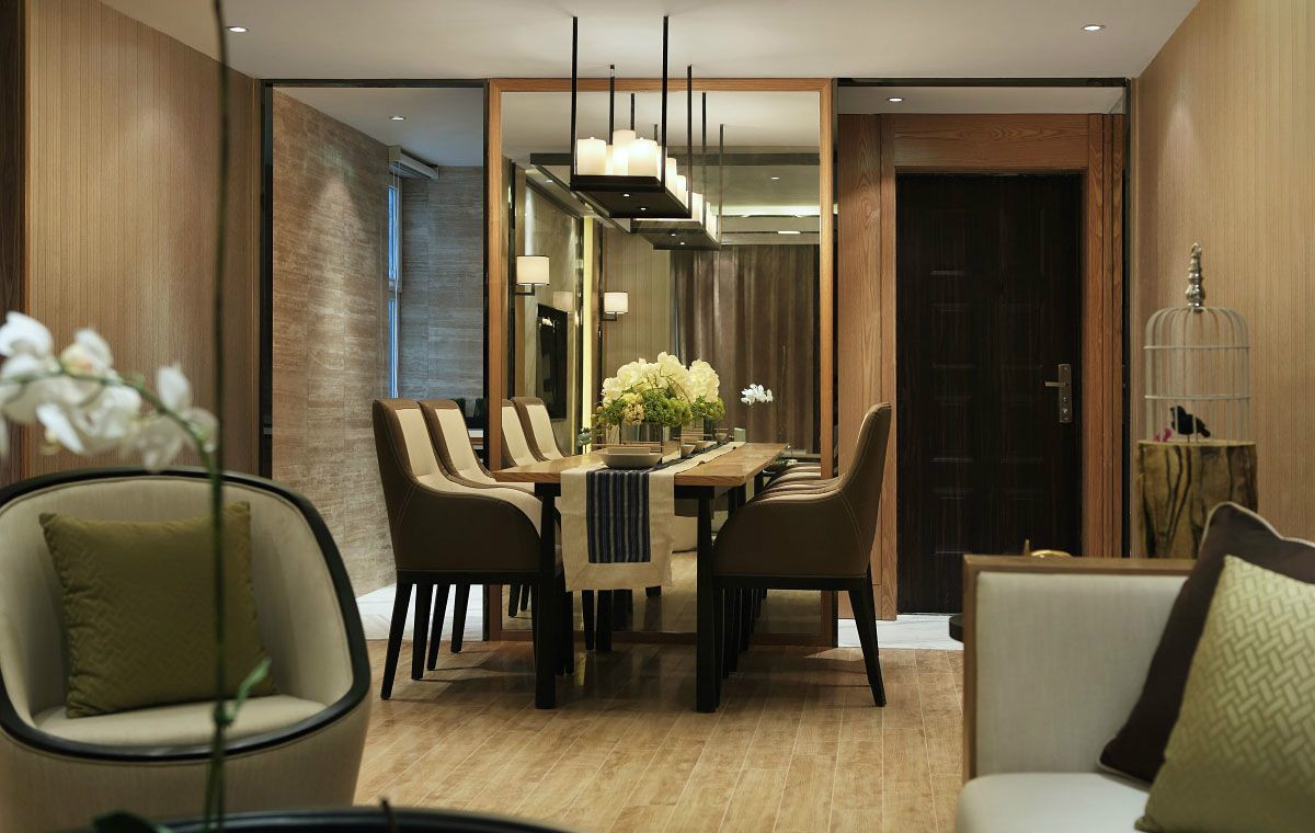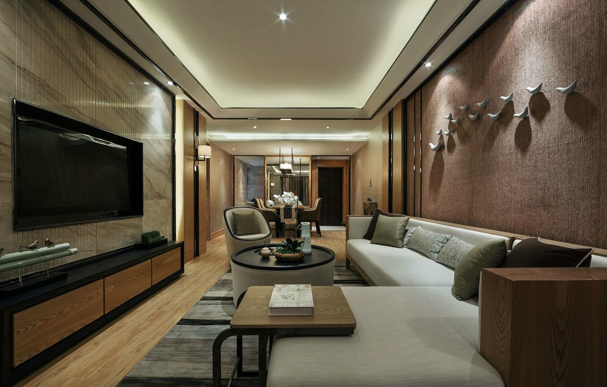 這套后現代風格的氛圍偏向于成熟穩重,因為戶型足夠大,所以就算是用深色作為主色調,也不會顯得狹小逼仄。吊頂藏光的設計,以及各式各樣的燈具,給整個空間增添了不少層次感。