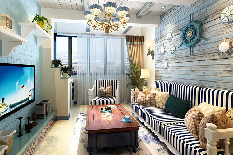 業主是一對年輕的小夫妻,對新奇有趣的裝飾都有一種嘗試性,所以他們選定了地中海風格作為家裝的主風格。海洋的元素在這套二居室里被廣泛運用,雖然戶型面積比較小,但是整體氛圍十分溫馨。