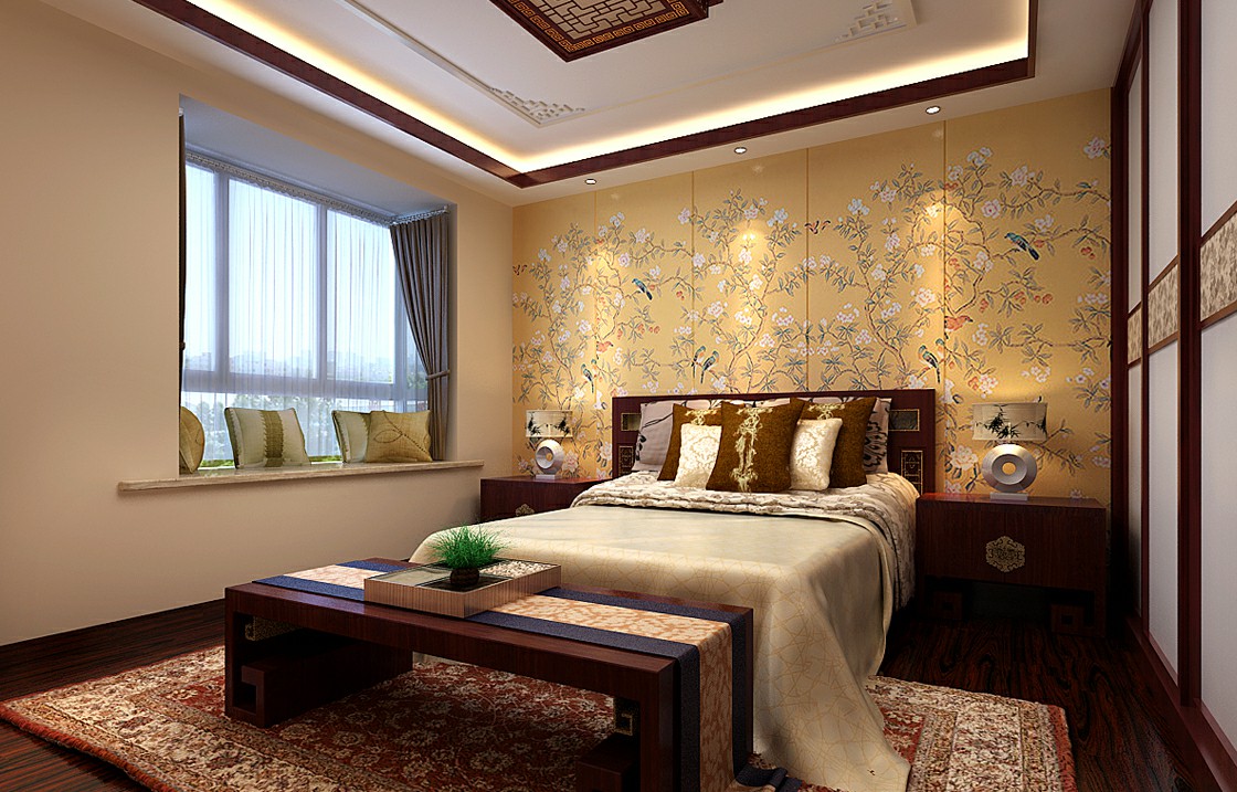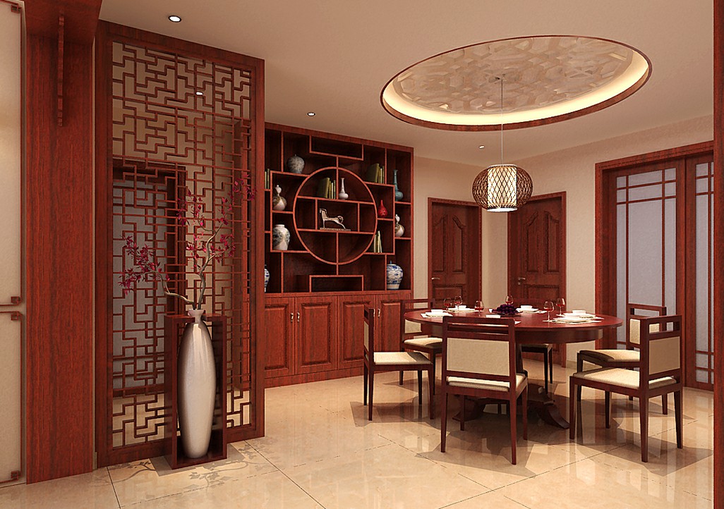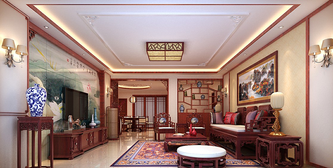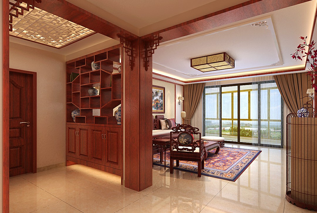 南寧人和萊茵花語毛坯房130平米中式風格裝修案例效果圖