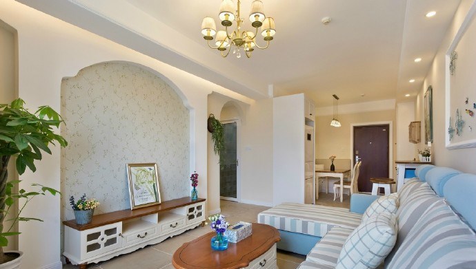 南寧新陽現代城毛坯房88平米田園風格裝修案例效果圖