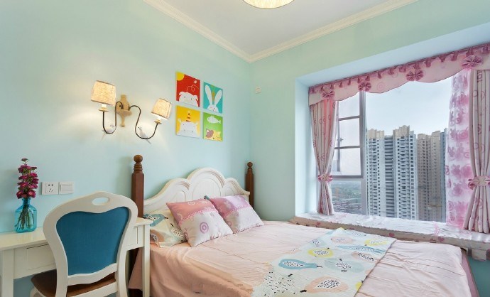 這套田園風格的三居室,用白色作為嫁妝的主色調,綠植做客廳與走廊處的點綴,清新自然又溫馨舒適。女兒房的設計則充分尊重的孩子的喜好,粉色的床上四件套和旁邊的窗簾相得益彰,打造了一個小公主專屬的溫馨小屋。
