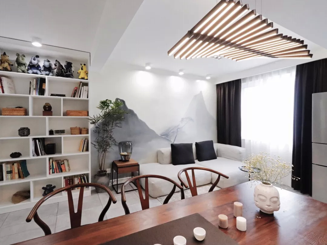 南寧錦繡麗園毛坯房98平米新中式風格裝修案例效果圖