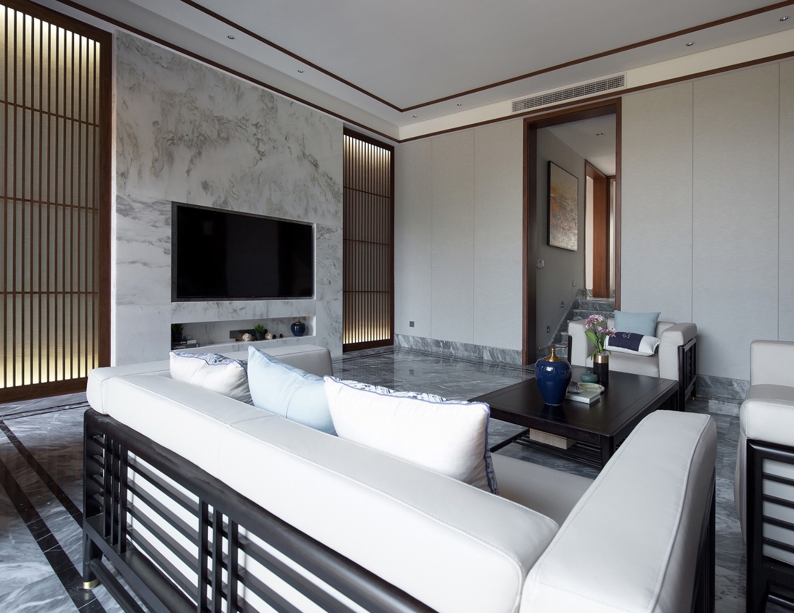 南寧中房翡翠灣毛坯房145平米新中式風(fēng)格裝修案例效果圖