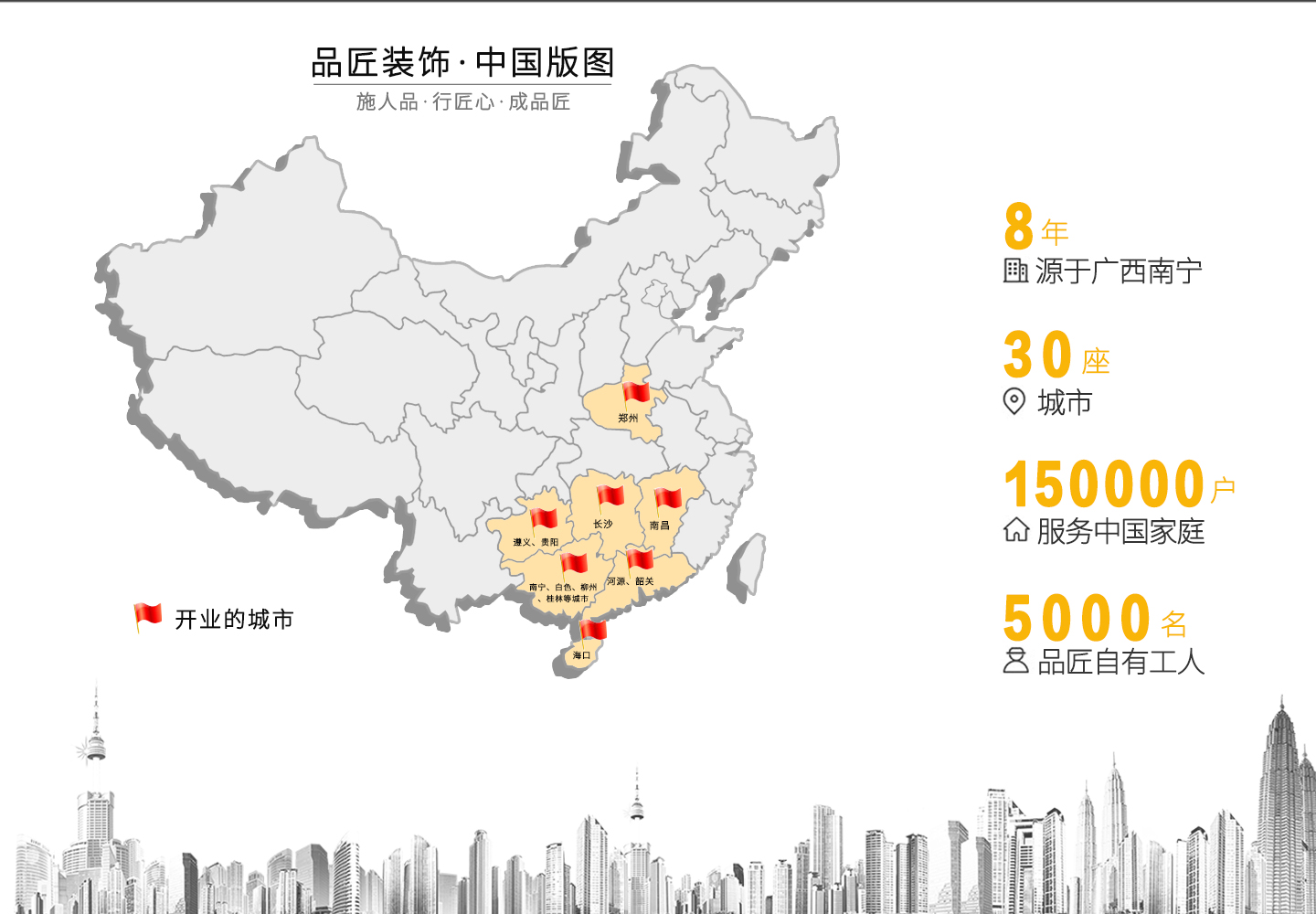 廣西品匠家居裝飾工程集團成立于2011年,迄今為止已經8年有余,已經成立了30余家分公司,貴州、湖南、江西、海南處處可見品匠裝飾的身影。品匠從一家小公司一步步擴大到今天的規模,與品匠一貫以來堅持的理念離不開關系。